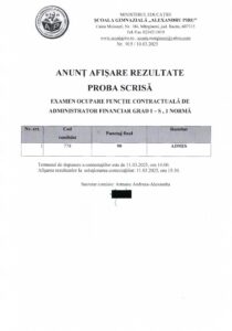 ANUNT REZULTATE PROBA SCRISA ADMINISTRATOR FINANCIAR-MARTIE 2025