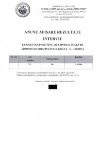 ANUNT REZULTATE INTERVIU ADMINISTRATOR FINANCIAR-MARTIE 2025